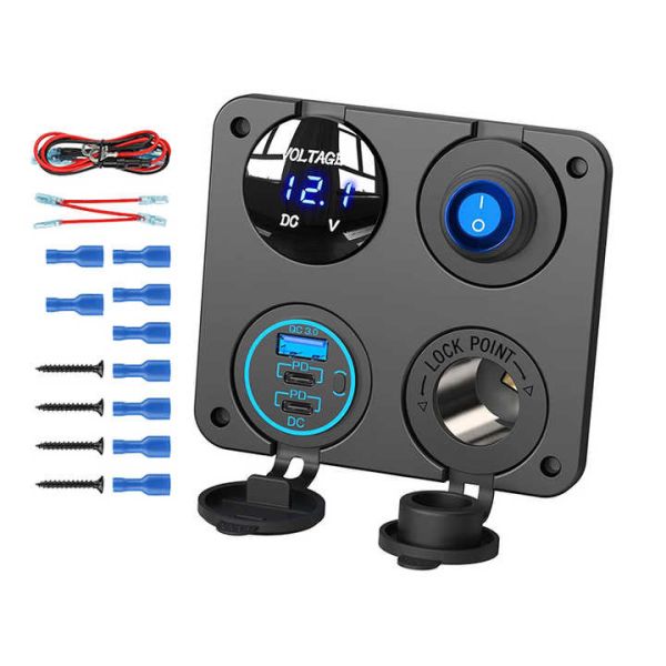 Waterproof Dual PD QC3.0 90W Car Phone Charger Voltage Switch Images |